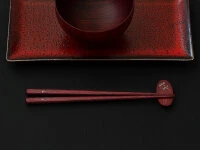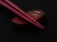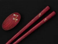 Hochwertiges japanisches Essstäbchen-Set aus Purple Heart von Yumekobo. Das Set besteht aus einem Paar Essstäbchen und einer passenden Essstäbchen-Ablage. Die Essstäbchen wie auch die Ablage wurden von Zogan-Künstlern mit feinen Perlmutt- und Walnuss-Einlagen verziert. Yumekobo gilt als eine der wenigen Manufakturen in Japan, die die traditionelle Dekorationstechnik Zogan für feine, edle Gebrauchsgegenstände wie Essstäbchen einsetzen und perfekt beherrschen. Die verwendeten Hölzer sind von ausgesuchter Qualität und werden ausschließlich in traditioneller Handwerkskunst bearbeitet. Alle eingesetzten Materialien sind pure Natur. Die sehr langlebigen, edlen Essstäbchen sind 21,5 cm lang und werden zusammen mit der Ablage in einer schönen Geschenkbox geliefert. Bitte beachten Sie unsere Pflegehinweise.