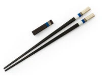 Produktdetails für „Japanische Essstäbchen Aoyama Blue, Ebenholz, mit Ablage“