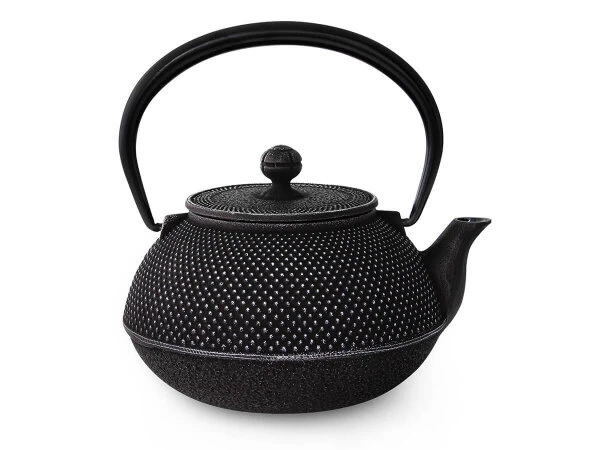 wird der Tee aufgegossen. Meist ist sie innen emailliert, was die Abgabe von Eisen und Mineralien, die im hochwertigen, japanischen Gusseisen vorhanden sind, bremst. Aber auch Emaille ist nicht vollkommen dicht, so dass Tee aus einer hochwertigen Iwachu-Teekanne einen reicheren Geschmack erhalten wird. Minderwertige Kannen sollte der Teekenner aus geschmacklichen und gesundheitlichen Gründen meiden. Achten Sie deshalb darauf, dass die Teekanne mit dem Original-Stempel von Iwachu oder anderen hochwertigen Herstellern ausgestattet ist.