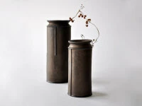 Sehr eindrucksvolle Vase, schwarz-braun, mit markanter „Narbe“. Metallische Glasur, die eine außergewöhnlich schöne Oberfläche ergibt. Künstlerisch sehr gelungene Kombination von moderner Form und nostalgischer Optik. Handgefertigt von Keiichi Tanaka in seinem Künstlerstudio in Kawagoe, Japan. Die Vasen der Kuro Serie sind tief beeindruckende Schmuckstücke. Ideale Kunstobjekte um Kontraste in einer modernen, minimalistischen Umgebung zu setzen. Oder harmonischer Glanzpunkt in einem nostalgisch-klassischen Raumdesign.