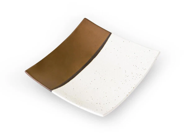 Teller und Servierplatte der Geschirrserie Sou, japanische Keramik, Steingut. Sehr schöne, leicht rustikale Anmutung. Die Goldglasur ist spülmaschinenfest. Sou ist ein Geschirr Set aus dem Hause Miyazaki, einer sehr bekannten Keramik Marke mit Sitz in der Keramikhochburg Toki, Präfektur Gifu. Das Porzellan aus Toki genießt in Japan und weit darüber hinaus einen hervorragenden Ruf. Toki ist eine der traditionellen Hochburgen für Porzellan und Keramikherstellung in Japan. Das Geschirr Set Sou aus Steingut wird in sehr hoher Qualität und mit typisch japanischer, außergewöhnlicher Ästhetik handwerklich hergestellt und zeichnet sich durch seine Schönheit aber auch Robustheit aus. 2 Größen erhältlich