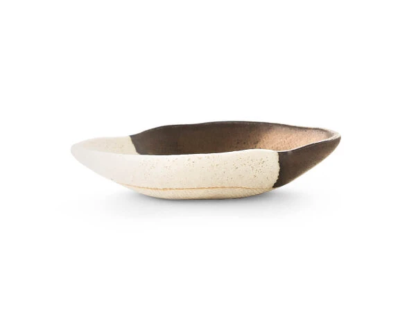 Kleine Soßenschale Sou, japanische Keramik, Steingut. Sehr schöne, leicht rustikale Anmutung. Die Goldglasur ist spülmaschinenfest. Sou ist ein Geschirr Set aus dem Hause Miyazaki, einer sehr bekannten Keramik Marke mit Sitz in der Keramikhochburg Toki, Präfektur Gifu. Das Porzellan aus Toki genießt in Japan und weit darüber hinaus einen hervorragenden Ruf. Toki ist eine der traditionellen Hochburgen für Porzellan und Keramikherstellung in Japan. Das Geschirr Set Sou aus Steingut wird in sehr hoher Qualität und mit typisch japanischer, außergewöhnlicher Ästhetik handwerklich hergestellt und zeichnet sich durch seine Schönheit aber auch Robustheit aus.