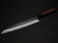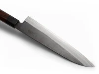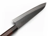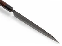 67 geschmiedet werden kann. Damit ist dieser Stahl der härteste, den wir für die Messerherstellung kennen. Gleichzeitig ist der Stahl so rostresistent, dass er auch bei uns mit rostfrei bezeichnet werden darf. Möglich macht dies u.a. die 3% Kohlenstoff und die 20% Chrom. Das Messer zeichnet sich durch ein sehr hohes Schärfepotential, die hervorragende Schnitthaltigkeit und die Pflegeleichtigkeit aus. Yoshida Hamono, die traditionelle Schmiede mit sehr langer Schmiedeerfahrung hat die anspruchsvolle Aufgabe den ZDP189 perfekt zu verarbeiten erfolgreich gemeistert. Bedauerlicherweise sind die Messer der Premium-Linie Kyusakichi nur in sehr geringen Stückzahlen mit sehr langen Lieferzeiten zu bekommen. Über die Partnerschaft mit Yoshida freuen wir uns sehr.