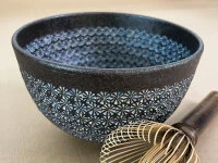 Wunderschöne Keramik Matcha Schale mit 400 ml Fassungsvermögen. Kunsthandwerkliche Keramik höchster Qualität. Die Schale wird von Keramikkünstlern aus Kyoto in Handarbeit nach traditionellen Fertigungsmethoden in kleinen Stückzahlen hergestellt. Ein wundervolles, exklusives Produkt, das nur selten zu bekommen ist. Nanban Mishimazume wird Ihrem gesunden Matcha Genuss eine feine Note geben.