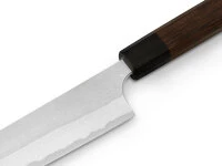 Sushi- und Sashimimesser von Yoshimi Kato in der Ausführung Nashiji. Ein wunderschönes Filetiermesser mit stolzen 27 cm Klingenlänge. Das mächtige Messer liegt sehr gut in der Hand und lässt sich mit etwas Übung hervorragend führen. Ein Messer für Könner und alle, die es werden wollen. Die von Hand geschmiedete Klinge besteht aus Aogami Super, der Stahl mit dem höchsten Schärfepotential unter den Kohlenstoffstählen. Die Schmiede Kanehiro von Hiroshi Kato gehört zu den besten, traditionellen Messerschmieden Japans. Aogami Super ist ein typisch japanischer Messerstahl mit sehr hohem Kohlenstoffanteil, exzellentem Schärfepotential und einer hohen Schnitthaltigkeit, d.h. das Messer bleibt lange scharf. Eingesetzt wird dieses Messer hauptsächlich mit dem „ziehenden Schnitt“, es ist ein Vergnügen für Köchin und Koch damit ein schönes Filet zu schneiden.