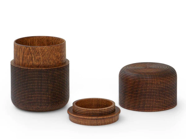 Wunderschöne, kunsthandwerklich hergestellte Teedose aus hochwertigem Birkenholz. Form Tawara. Handgefertigte Lacquerware (