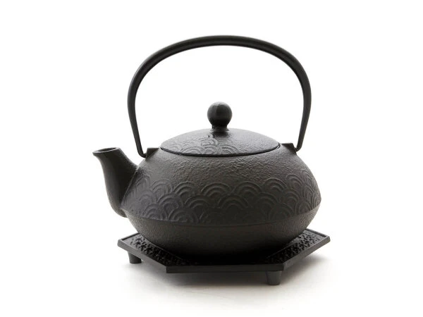 und der Tetsubin, iron kettle, miteinander verwechselt werden. Es gibt nur wenige, sehr gute Kombimodelle, NAMI AOMI ist eines der schönsten. Wasser kochen, etwas abkühlen lassen, Tee aufgießen – die praktische Lösung für die Liebhaber des authentischen Teetrinkens. Das integrierte Edelstahlsieb macht es möglich die Teeblätter nach dem ersten Aufguss heraus zu nehmen, NAMI AOMI hält den Aufguss auf Temperatur. NAMI AOMI ist nicht emailliert, so dass der Tee das gesunde Eisen und die Mineralstoffe der Teekanne ungehindert aufnehmen kann. Genießen Sie einen reichen Teegeschmack.